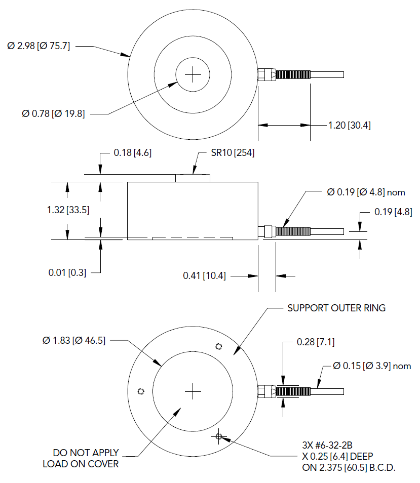LLB550是一款大量程按鈕式測力傳感器,底部設有安裝螺紋孔。它設計用于壓力機或軸向壓力測試的應用場合。標準型號的LLB550大量程測力傳感器的材質為17-4不銹鋼,產品堅固耐用,它的外徑為76.2mm。電纜為3米長的24 AWG 4芯特氟龍屏蔽電纜。你也可以根據你的要求選擇相應的傳感器信號輸出接口。